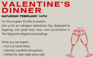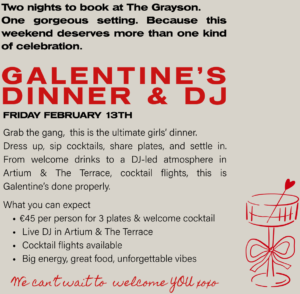 Reserve Here Please note limited tables available | View Galentine’s Menu